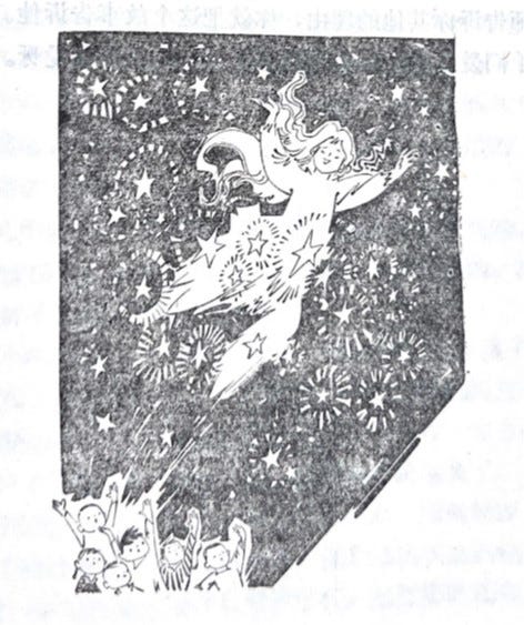 而另一個插圖輔助的作用傳達性:「意義的傳達就是由於圖畫的媒介,而使兒童領會了涵義。大部份都可以單獨從圖畫中想像它的故事,為了使兒童容易領會」,[6]通常是因為故事比較抽象或複雜,又或者是現實中不存在的事情,單靠文字難以理解,需要配圖去激發想像,為小朋友創造幻想空間,從而加強文字的說服力並且作為情景渲染,參考〈月亮的女兒〉結尾的插圖,故事最後女兒化身守護神飛往天空,然而文字描述:「她就縱身向天空一躍,立刻她就化成了千片萬片飛上天去,成了千片萬片光閃閃的東西,發出耀眼的光芒,這就是從前天上所沒有的——星星」,[7]對於小讀者來說比較複雜,而配圖將文字具體表達,將想像變成現實,同時可以引導兒童思考,從而達致學習成效。